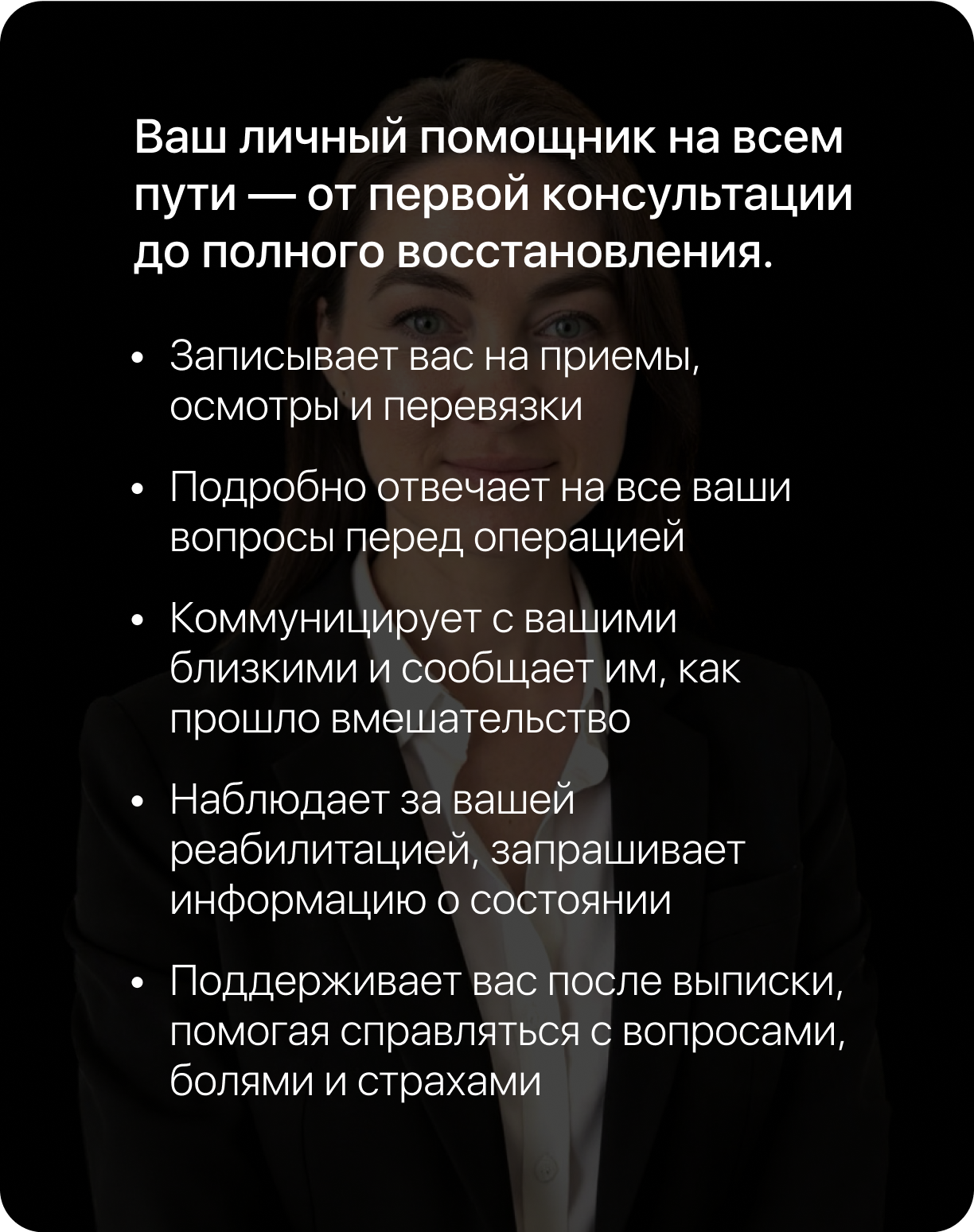 Информирует ваших близких: сообщает о ходе операции, состоянии и процессе восстановления.